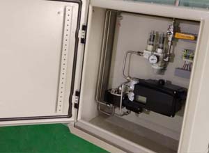 气动执行器就地控制柜风箱挡板控制装置。它是火力发电厂配套锅炉安全经济燃烧所必须的一个重要环节。根据燃料种类(气体、油、煤)的不同和燃烧器投放只数的不同,该装置接受DCS电信号,将其转换为气信号送给现场执行器来控制风门的开度或摆动火嘴的上下摆动角度,达到经济燃烧的目的。它是控制室到现场气动执行器之间的一个中间信号转换装置。
